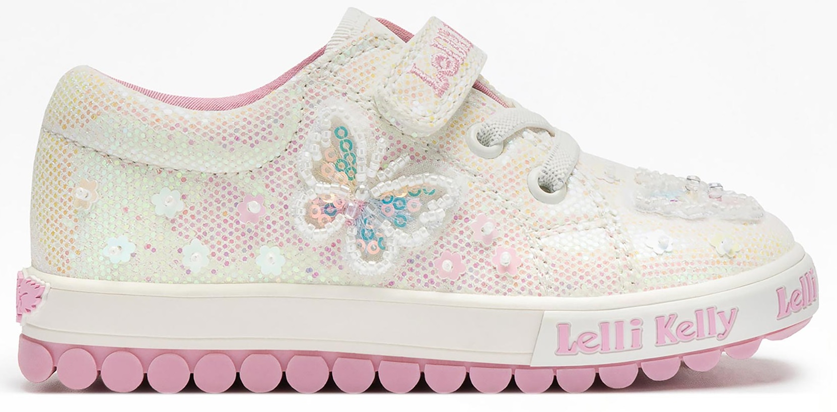 Featuring an iridescent upper with sequin detailing and butterfly embellishment,